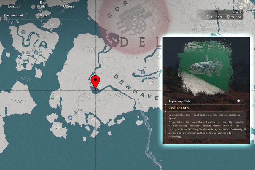 Coelacanth is found in the river that runs between Delysia and Dewhaven. The best place is the middle area where the river is close to the Cliff of Despair.