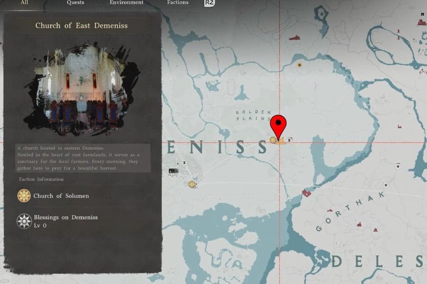 The gloves can be found just above Deminis, towards the topmost part of the map, where the letter “N” is indicated. You will find the field surrounded by other farms. Make your way to the rocky terrain, then proceed to climb the building where you can find the gloves.