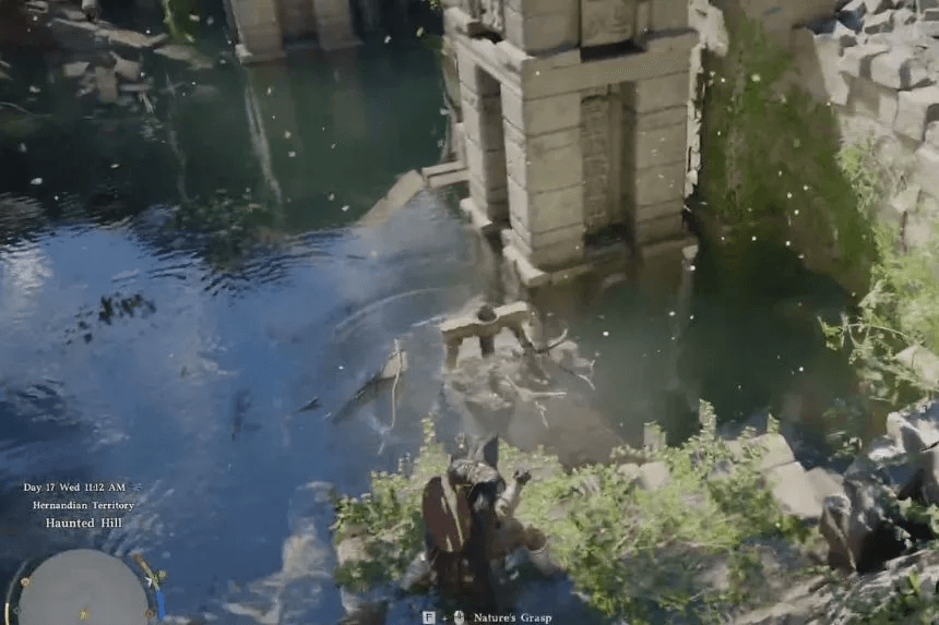 After going there, you will notice a character around. Approach them, and it will show you how to utilise the Nature Snare. You have to empty out all the water in the area. Concentrate on spinning the Nature Snare, which will generate a turbine-like energy to start decreasing the water in the area. Make sure you have enough spirit, or the snare won’t work properly. If you run out of Spirit while solving the puzzle, just use the Focus ability; it will quickly refill your Spirit so you can keep going.