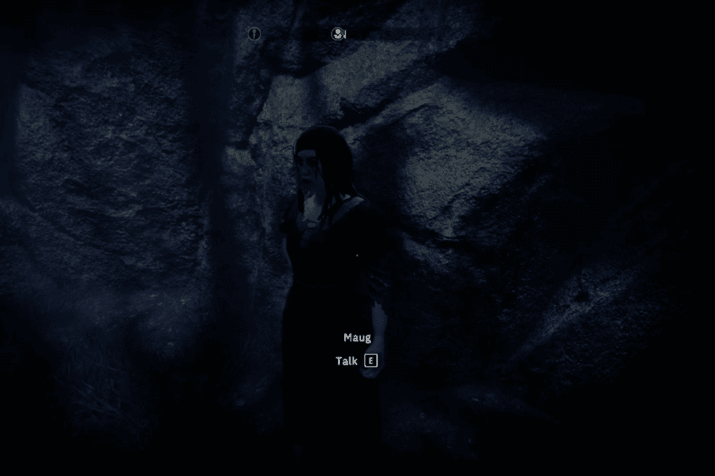 Head back to the entrance of the mausoleum and go left. You’ll spot a stone and, if you go around, a chest with treasures and a maze. Look for a spot where you can jump onto a coffin. This leads to a secret area. Keep searching, and you’ll find a treasure chest. Continuing on, you’ll find another dead person and a second chest with more loot. Follow the path, and you’ll finally meet Maug.