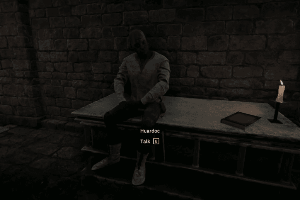 Inside, you’ll meet Huardoc, the keeper of the place. Don’t kill him right away, talk to him. He’ll mention his “master” and his experiments.