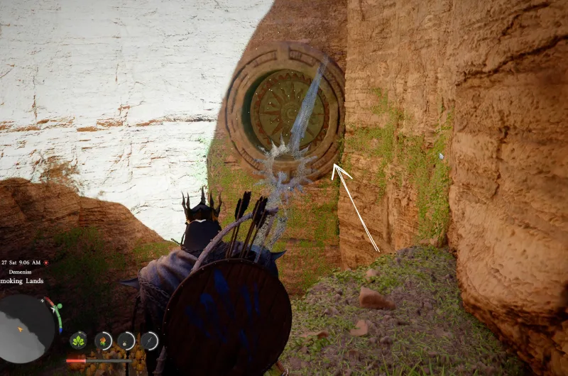 Once you make your way down to the lower level, look for this narrow path between two rocks and go through it. Then take left shortly after you make your way through the narrow path and just follow the path, take no deviations and you’ll reach the final plate, change its symbol to the sun.