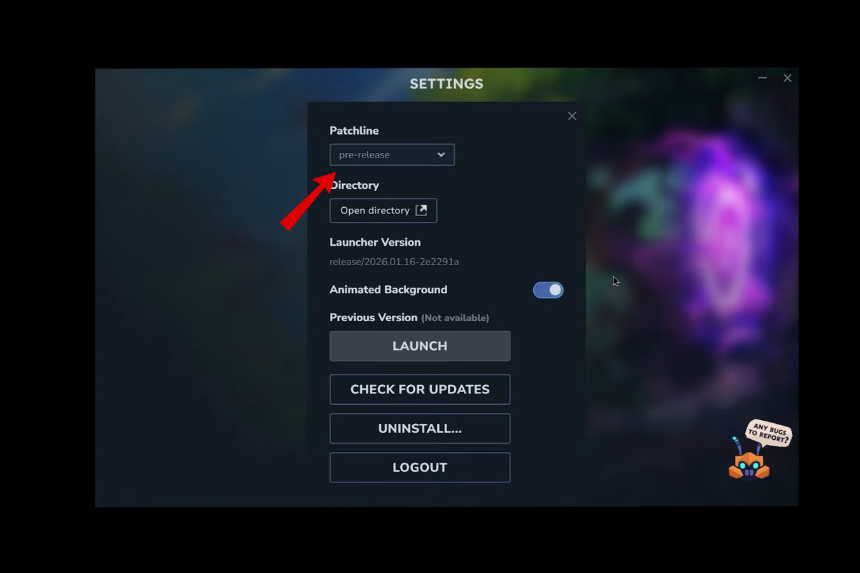 Okay, so what you’ll need to do is start by opening the game settings to enable the pre-release update. Go to the patch line option and choose pre-release instead of release. Next, download the patch and launch the game. You’ll see a confirmation that pops up on the main menu indicating the update has been installed in the correct way.