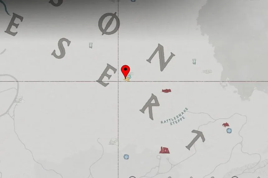 This weapon can be found at Crimson Desert, close to letter E on the map. In that place, there is a camp of enemies, but the bow is placed in a chest inside the camp. First of all, try getting up to the upper level of rocks in order not to fight with the enemies.