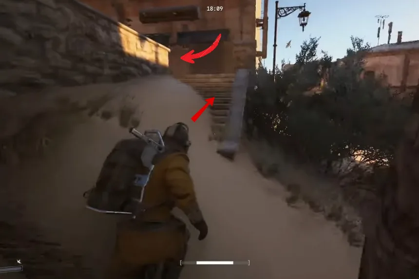 For completing the quest, you’ll need to locate the café with the Espresso Machine first. Go to the Plaza Rosa building near the Southern Station in the Buried City map. Upon spawning at the point (exact location in the image above), keep going straight until you come across the steps that lead you to the café which has a sign “Caffe Da Rosa” above the doorway.