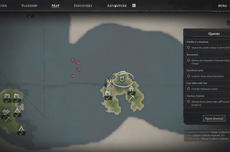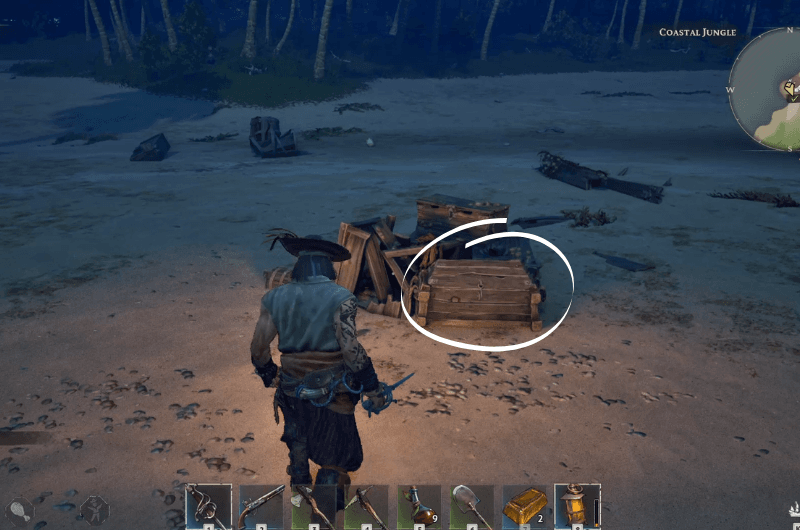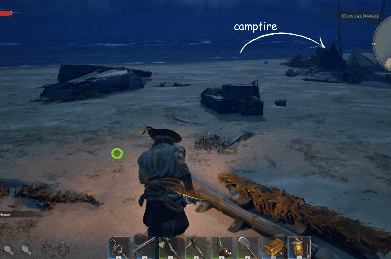 When you reach the abandoned campfire, look for a treasure chest like shown in the above image, inside which you’ll find the survivors diary which will lead to another location where the treasure chest is buried which is on the same island, so you don’t have to worry about sailing off to a new location.