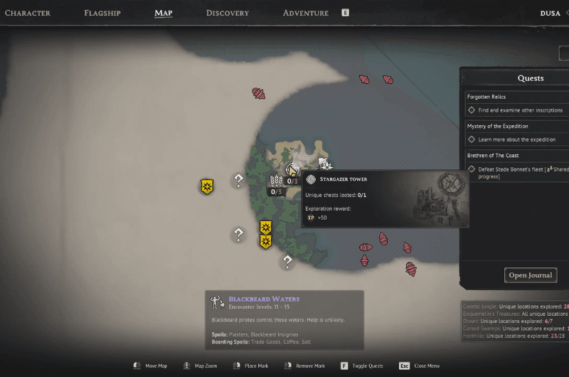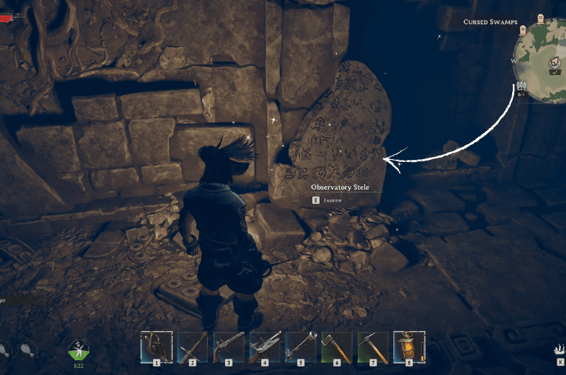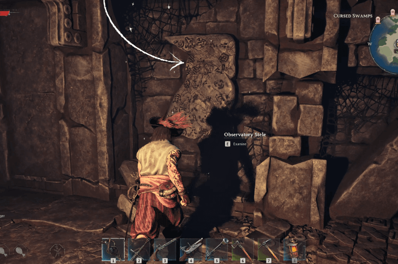 During your main questline progression – Forgotten Relics in the Cursed Swamps, you’ll come across a Stargazer Tower at one of the points of interest on the island.