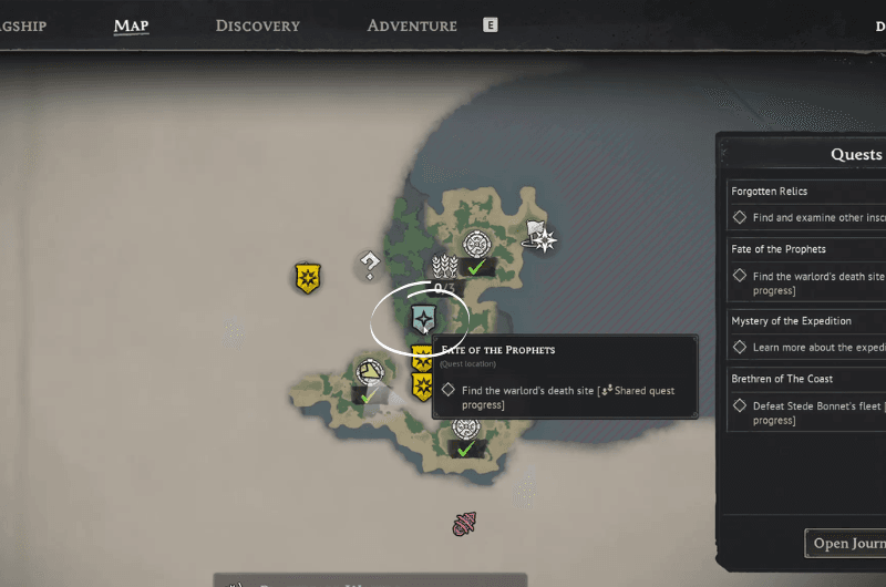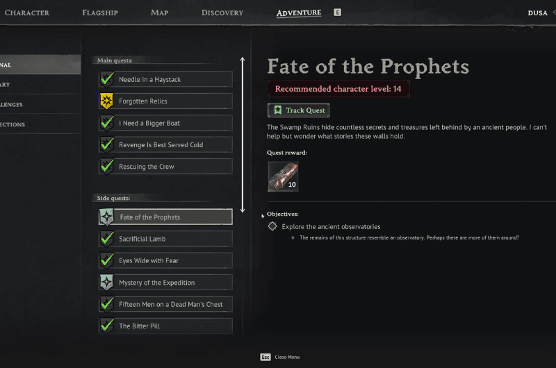 Starting the Fate of the Prophets side quest requires you to progress your main questline to the Cursed Swamps biome, which can be done by defeating the Foothills Boss – Israel Hands.