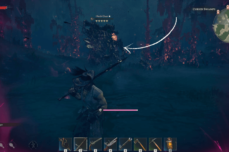When you visit the Warlord’s Death Site, a mini boss fight will initiate with a swamp creature called Chick Chan. He’s a sturdy boss, built like a tank and it’s going to take some time to defeat him because of his tankiness. He has a basic moveset like basic attack and throws stones at you when you get too far from him.