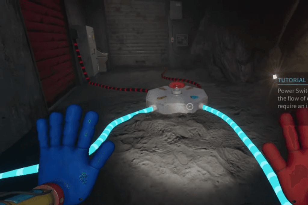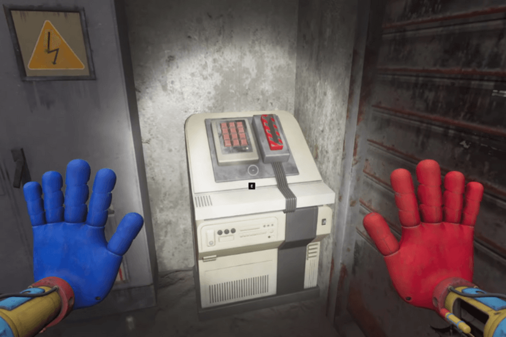 Alright, with keycard in hand, head back to the terminal in No Man’s Land and use it. Then, cross the drawbridge to the main area. Here’s the next step: you need to use the two electrical boxes in this main area to send power to the control room with the red shutters. Go inside the control room and pull the lever to finally lift the lockdown in No Man’s Land! Once that’s done, leave the control room and look to your left. You’ll see a door with hand scanners on each side. Quickly place your blue and red hands on the scanners to close the door behind you. Now you’re on your way to the next part of Poppy Playtime Chapter 4!