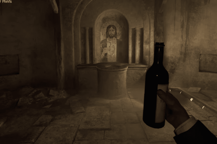 Watch out for the captain patrolling near the main entrance, he can see through your disguise, so you’ll need to be cautious while getting inside. Once inside, pour wine into the basin in front of the altar. Then, turn the bas-relief to the left. This will reveal a hidden staircase leading underground.