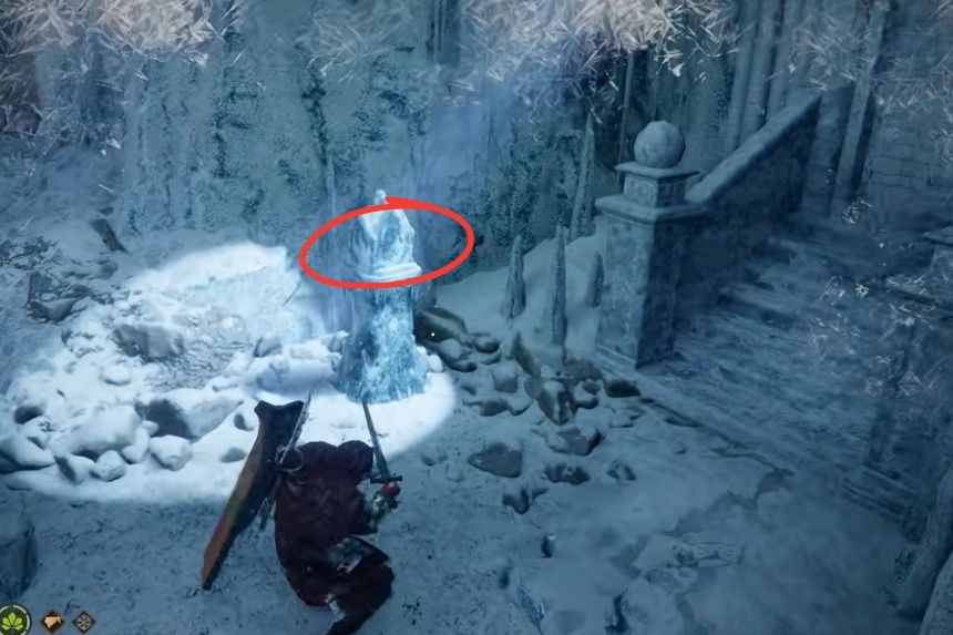 As you go along the route and complete the lantern puzzle, look at the bottom of the outer spiral staircase and find a chest. Inside the chest is the Frozen Anguish, a two-handed sword located inside the Spire.