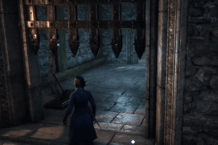 To find this chest, head to the right entrance of the manor. Near the entrance, you’ll see some barrels and a boarded-up area. Break through the boards to reveal a small room containing the chest. Inside, you’ll find the Davrin Armor called the Griffon’s Tail, Vhenadahl’s Tears, and some gold.