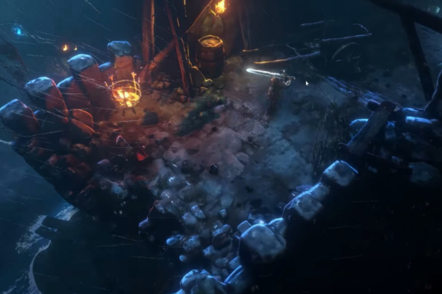 To start off in No Rest for the Wicked, head over to Mariner’s Keep and go towards the bonfire. At this location, you’ll hear noises coming from behind the Mess Hall’s locked doors; this will indicate that the blacksmith Fillmore is under attack. To help him, you first need to find a key that unlocks the Mess Hall door.