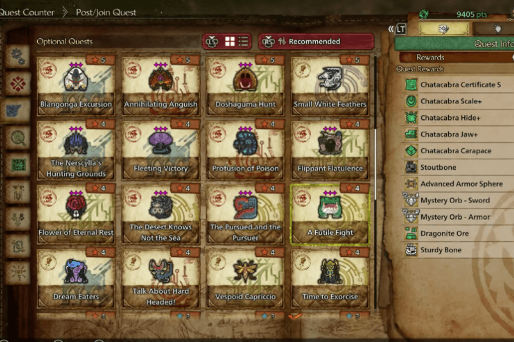 They can also drop from any Investigation or Field Survey involving these monsters. On the world map, you can check what rewards a monster drops by selecting the monster (press X on PS5 or A on Xbox). Then, to see the quest rewards, press R1 on PS5 or RB on Xbox.