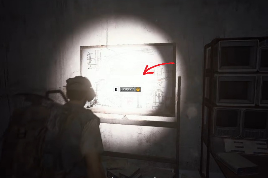 Look for a whiteboard in the corner of the room; as you progress through your search, interact with the whiteboard to view the construction research. Doing this will complete step one of your investigation, and unlock the next objective.