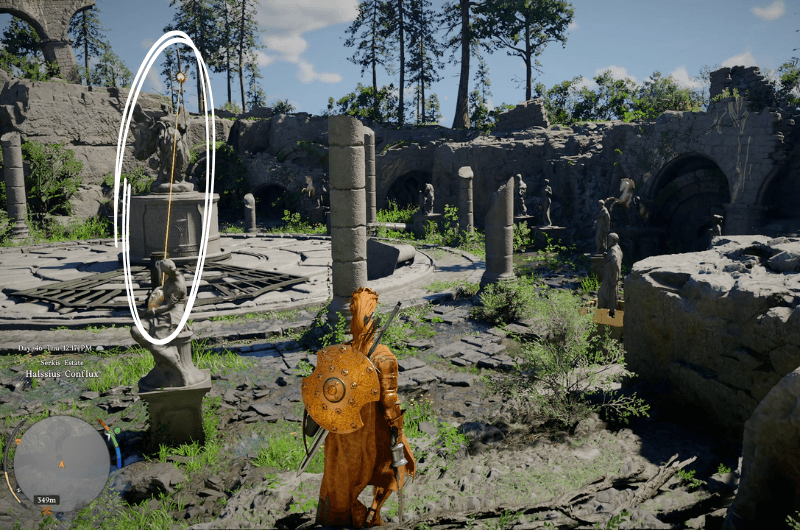 Head to the above highlighted location shown on the map in the above picture which is south west to Demeniss and you’ll reach the Halssius Conflux Ancient Ruins. If you are having a problem to locate the exact location of the ruins, then look for a point of interest marker that appears on the map when you are nearby the ruins, head towards the marker and you’ll reach the ruins.