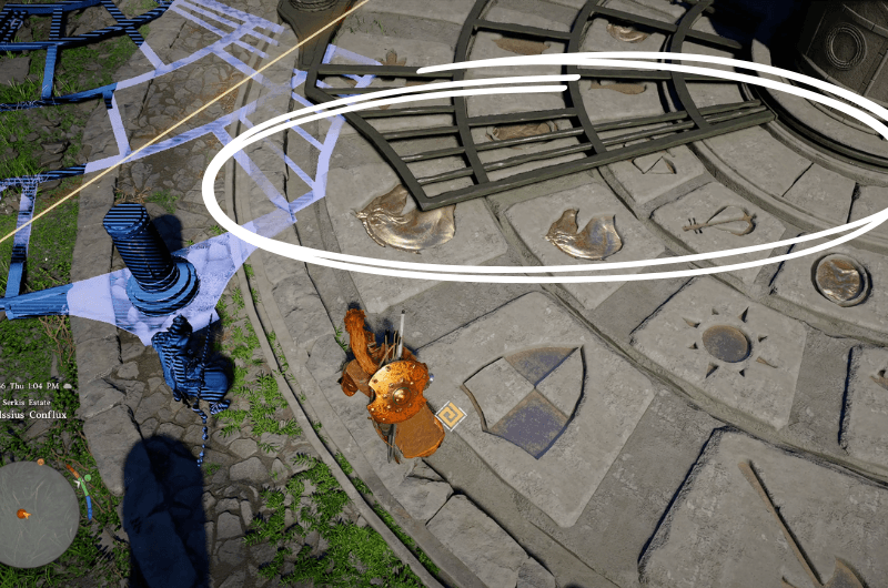 Head towards the left side and you’ll notice the symbol covered under a broken pillar. It’s recommended to move the pillar using Nature’s Grasp before moving the grate as it blocks the grate’s path.