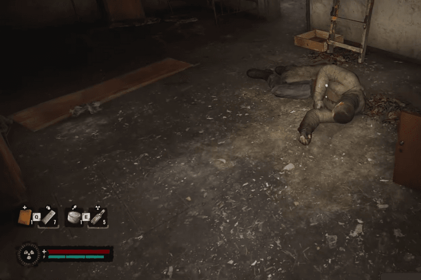 Upon entering the bunker, turn left, then immediately turn left again. You’ll see a narrow path leading to a dead body. Approach the body and look for a small device on the ground nearby. Unfortunately, the group Lens sent you to find has been wiped out.