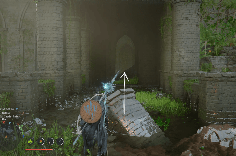 Make your way to the above location, Bursada Castle Ruins which is in southern Crimson Desert region near Red River. The ruins are occupied by enemies, if you haven’t already liberated the location, I would recommend in doing so to navigate freely around the ruins without getting into combat.