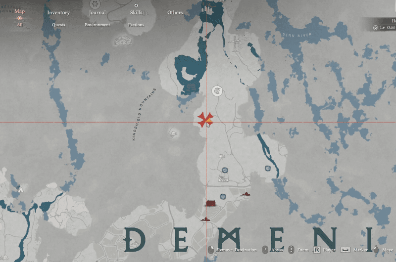 Head to this marked location on the map shown in the above image which is north of Demeniss towards the Spire of Soaring.
