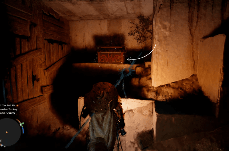 You’ll see a wooden blockade, use any skill or attack to break the wooden planks, then make your way inside through the space and you’ll see a treasure chest inside.