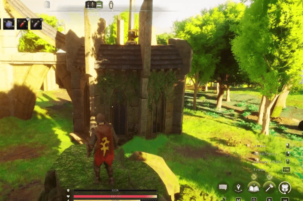To start things off, head into the vault located in the northern part of the map. As you explore inside, you’ll come across a sandy area with some broken pillars shortly after grabbing your first Vault Core. Here, you’ll need to defeat four rats before doing anything else. Once that’s done, look toward the right-hand side from where you entered, you’ll spot an opening high up on the wall. Use the Windstep spell to leap up there, and you’ll find a statue you can interact with and remember Pthentorok.