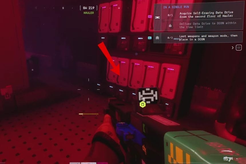 The Hauler is a big machine in the middle of the map. When you arrive in the area, clear all the enemies first. Once the area is clear, go inside and make your way to the second floor. If you enter from the north side, go towards the second floor and look for a server room. Here, you will find the self-erasing data drive.
