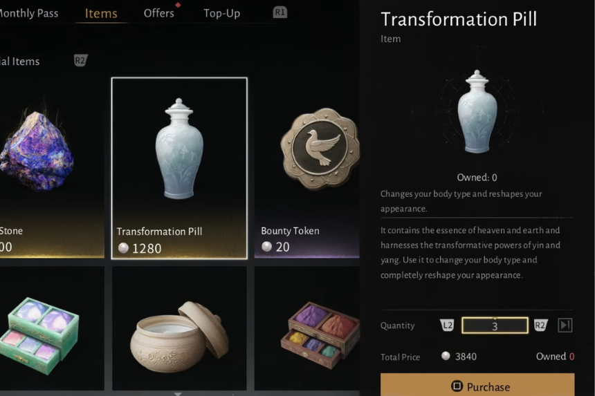 The Transformation Pill is not something you can buy with standard in-game progress alone. It requires premium currency, which converts to real-world money. Depending on how you purchase it—either on its own or through a bundle—the cost lands somewhere in the mid-range price bracket.