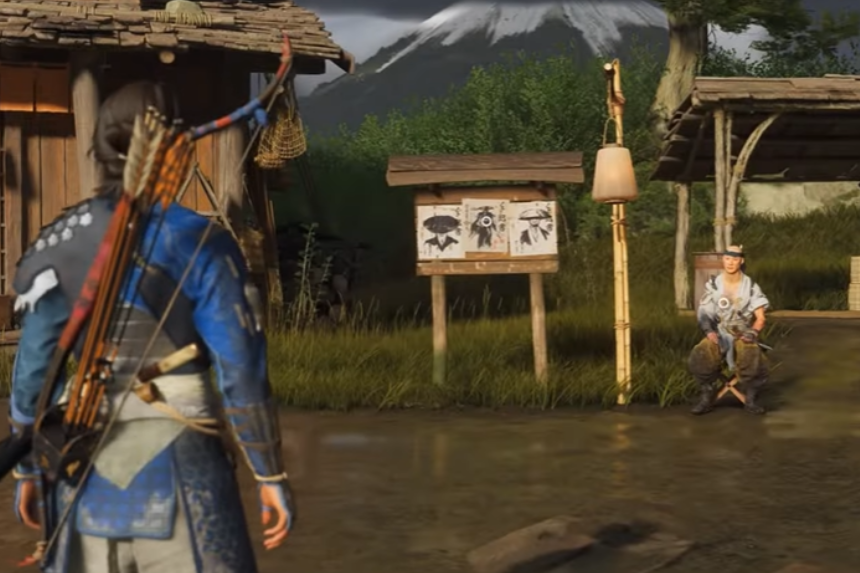 To begin Smiling Yoshitomo Bounty, you will need to play through the early parts of the game. That includes defeating the Snake, visiting your old home, and heading to the nearby Inn. After a small fight with some enemies, go back to the Inn the next day and check out the Bounty Board outside. You will find a guy named Kojiro sitting next to it.