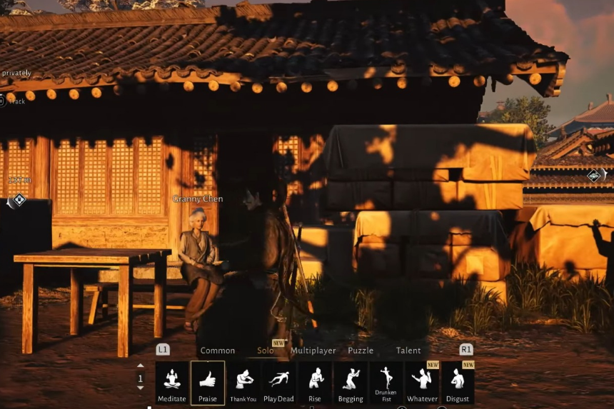 Instead of combat or item collection, the quest asks you to mirror their stance and perform a specific emote. Open your emote wheel, scroll through the available options, and select the Praise emote. You’ll find it listed under the Solo category.
