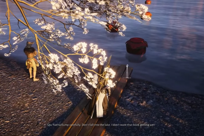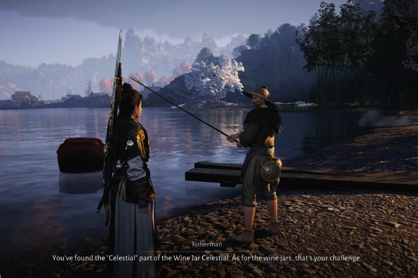 When you finally speak with him, be prepared for a lengthy conversation. His dialogue goes on for several minutes, but once that’s wrapped up, the actual challenge begins. The quest will ask you to finish the “wine jar” trial, though it won’t activate unless you speak to the fisherman again to trigger the minigame.