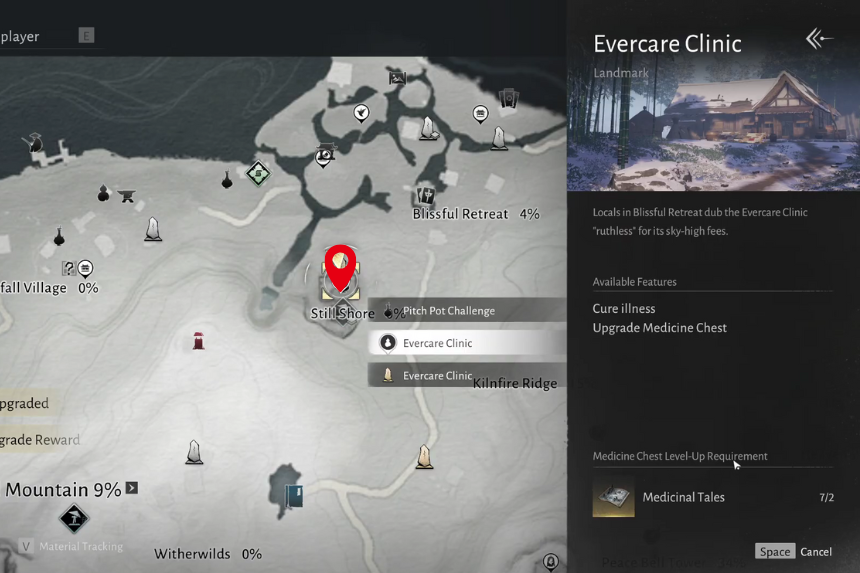 The clinic sits in the midwestern part of Qinghe, just north of Moonveil Mountain and south of Blissful Retreat, so it’s pretty easy to spot on the map. Just keep in mind that Yao Yaoyao’s help doesn’t come cheap. Her treatments cost around 10,000 coins, so be ready to spend a bit.