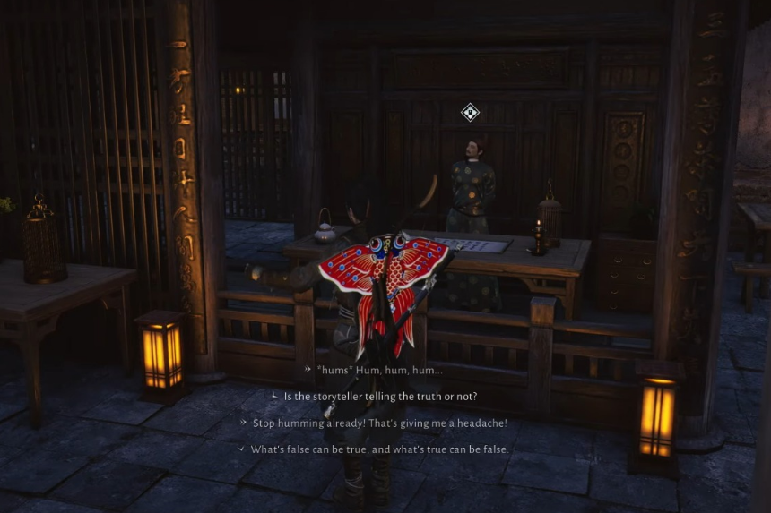 Then, once the conversation dies down, start jumping across rooftops keeping to your right and you will finally reach Jiang’s Teahouse in South Gate Avenue. Since it’s part of the Tale of Gold Leaves: Volume ll and you’re there to search for tales about the Gold Leaves and the Immortal Tree, speak to Jiang and complete the objective.