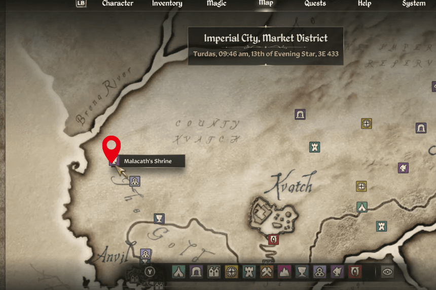 Malacath’s Shrine is located in the far west of the map, north of Anvil and just northwest of Lord Drad’s Estate. To start the quest, you’ll need to offer troll fat, which can be dropped by trolls when you defeat them or purchased from alchemy vendors.