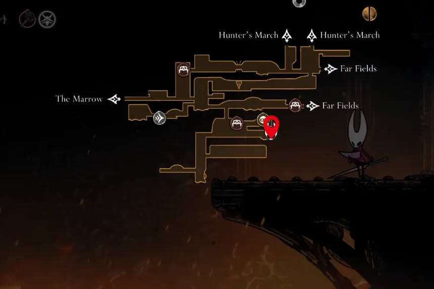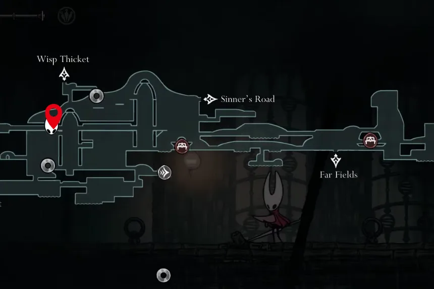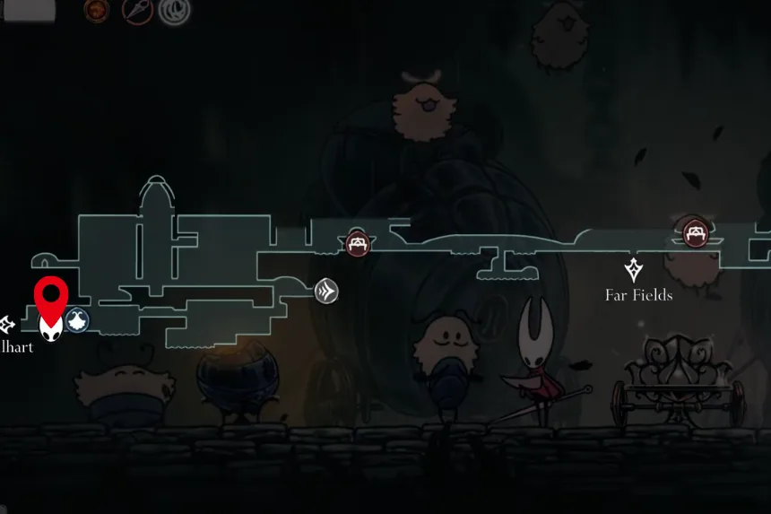 In Far Fields, look for the tall room with strong wind gusts. Drop all the way to the bottom, go through the door on the left, and you will find what looks like a dead end. Jump around there to uncover a hidden path that leads to this Tool. When equipped, it protects Hornet from taking extra damage while healing once per encounter. You will still use up your Silk, but it also pushes enemies away to give you some breathing room.