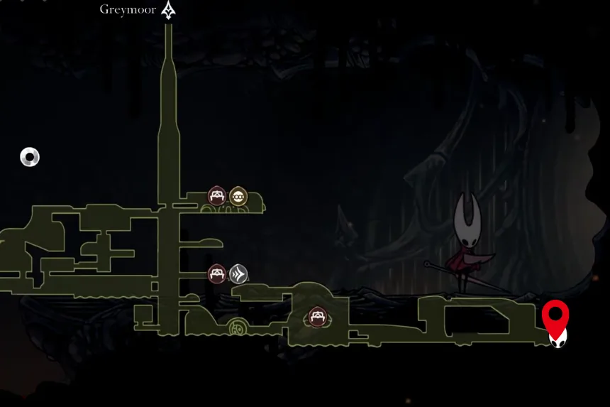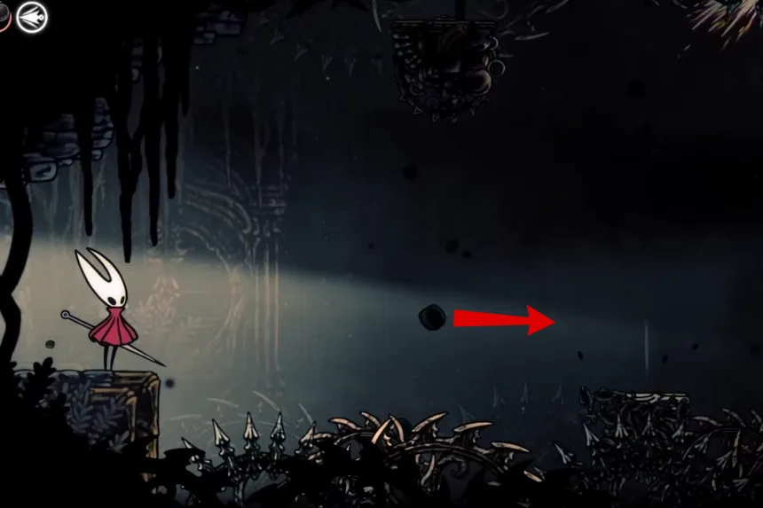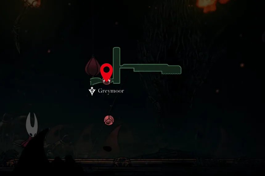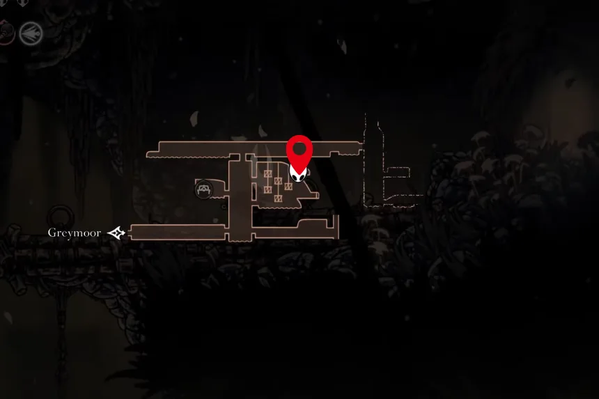 Head to the big room on the east side of Greymoor and complete the combat trial inside the house to unlock the balloons. Use those balloons and the platforms to reach the upper right corner, where you will find a hidden room behind a large Craw enemy. Inside, you will get an upgrade that lets Hornet throw three knives upward at a 45-degree angle in a spread, perfect for hitting enemies above you.