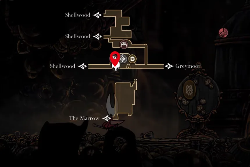 Near the end of The Marrow, you will find a lava-filled room. Climb up to a room with spikes and collapsible platforms, go halfway to the bone bridge, then cross it and enter the room beyond to grab this Tool. With it, enemies will drop more Shell Shards, which are useful for repairing tools and completing quests.