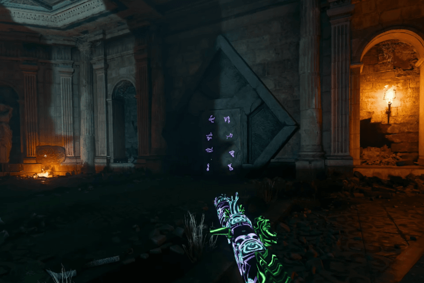 If you don’t kill enough zombies, go back outside the Dig Site and find another door with symbols on it. Shoot the same three symbols again, go through the door, and try the zombie-killing challenge again. Eventually, you’ll be led back to the stone structure where you originally got the Ice Staff. There, you can finally upgrade your Ice Staff!