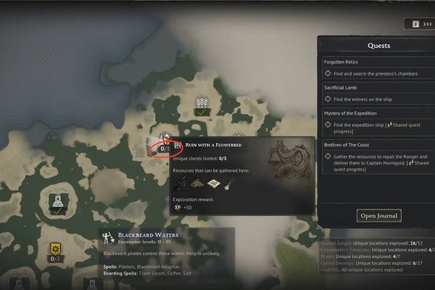 In order to farm Bean Seeds, you must enter the Cursed Swamp zone, which becomes available after defeating the boss Israel Hands of the Foothills zone. Once defeated, you will receive a mission known as Forgotten Relics that will lead you to a Cursed Swamp zone location. After reaching the location, begin exploring the ruins, near the ruins that have flower beds.
