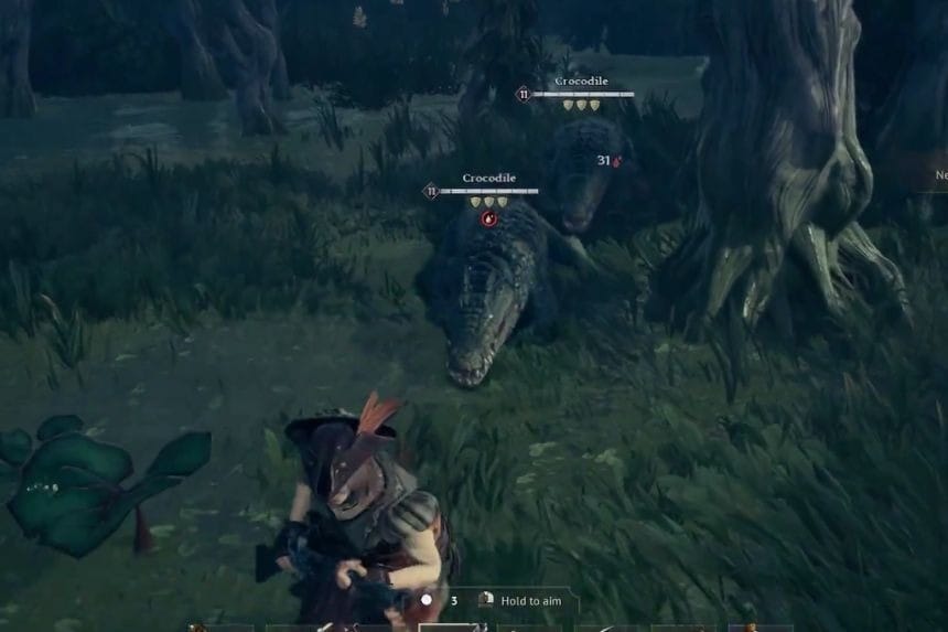 Crocodiles in Windrose are among the most dangerous animals that you will face in the Cursed Swamps. These crocodiles usually lie in wait in shallow water and suddenly attack, causing damage from their powerful bite attacks.
