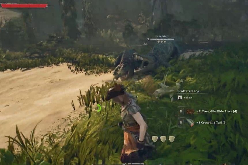 Stay on dry land whenever possible. Crocodiles are much faster and more dangerous in the water, so fighting them there can quickly go wrong. Use weapons that deal Pierce damage, as their hide offers little resistance to Pierce attacks. Pack Healing Potions and Bandages in your inventory. Crocodile attacks can deal a lot of damage, so carrying healing items can increase your chances of survival.