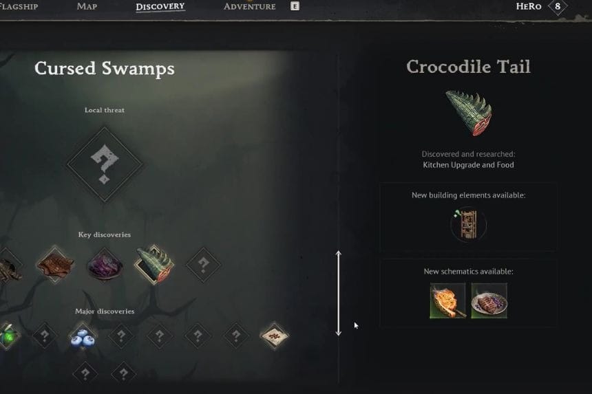 You can use Crocodile Tail in a few different cooking recipes, making it a pretty useful item to have. It’s mainly used to prepare dishes like Crocodile in Swamp Sauce, which gives you three portions, and Meaty Croc Kebab, which yields four. You can also turn it into Skewered Crocodile Meat for a single serving, or use it in a Tamale recipe. So if you’re spending time hunting crocodiles in the swamp, it’s definitely worth keeping the tails for cooking rather than letting them go to waste.