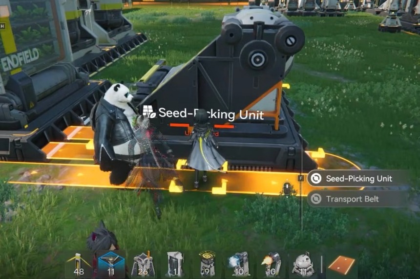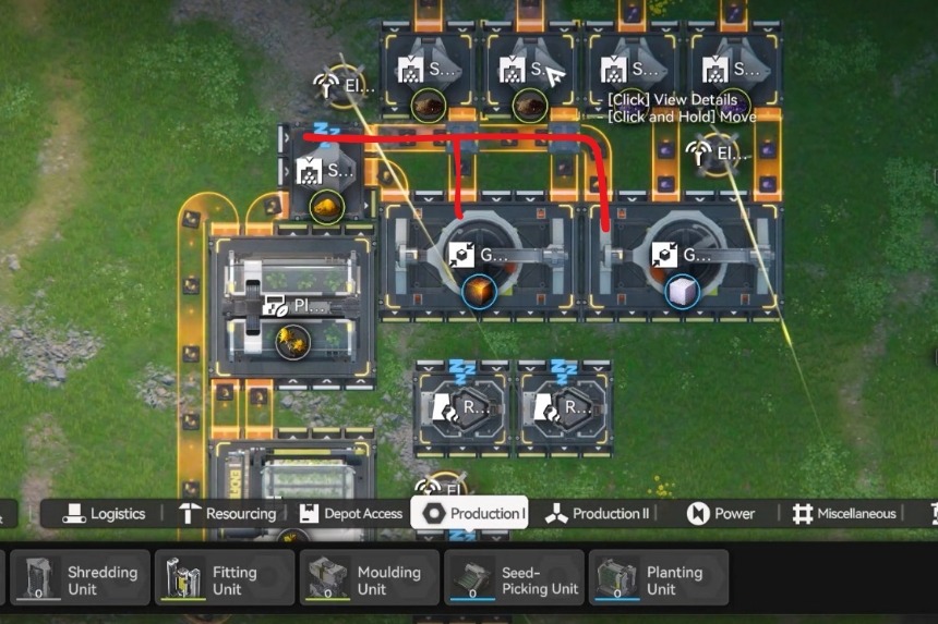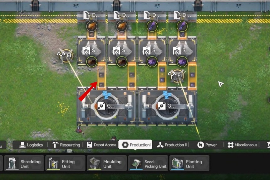 Afterward, the Seed Picking Unit must be positioned left to right with a one-block gap between itself and the Planting Unit, followed by connecting both of these units using two conveyor lines and creating a conveyor belt from the Planting Unit into the Seed Picking Unit.