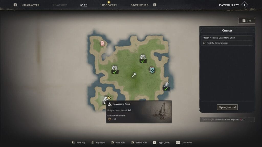 If you follow the map, going to the traveller’s camp is quite easy and you will spot the first chest right next to the camp. However, there is a second chest and it contains gunpowder.