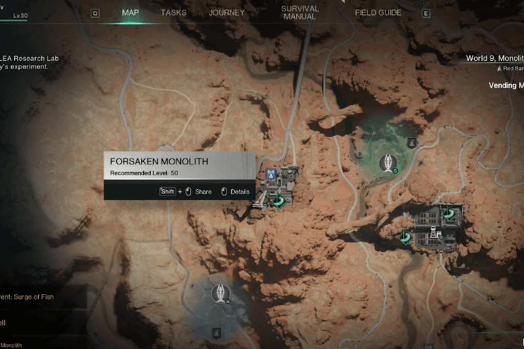 You can get the Nutcracker Deviant by defeating Mensdevoran inside the Forsaken Monolith. This place is in the Red Sands region, and it’s home to a massive level‑60 boss, so be ready for a tough fight. You’ll need to be at least level 50 if you want a real chance at taking this boss down.