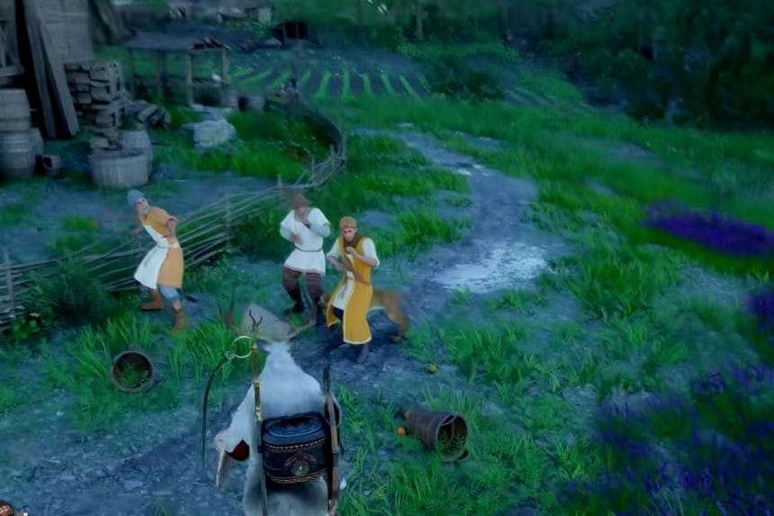 When the merchant gets scared, they will drop the peddler’s pack on the ground, which you can pick up and take for yourself. Stealing the pack will start a Theft Bounty. A red danger area will appear around your character, so move out of that area as quickly as possible to avoid getting caught.