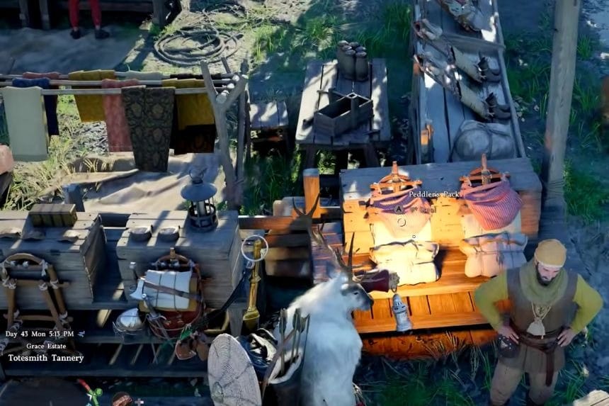After you are outside the danger area, remove your mask to lower the suspicion. Always wear a mask before going towards the merchant, so that you are less likely to be identified. One of the easiest ways to get a peddler’s pack is to go towards the Totesmith Tannery.