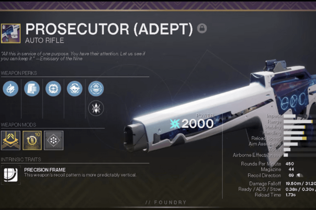 Prosecutor God Roll in Destiny 2