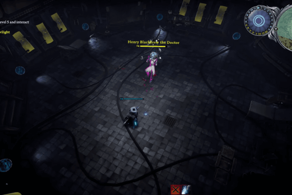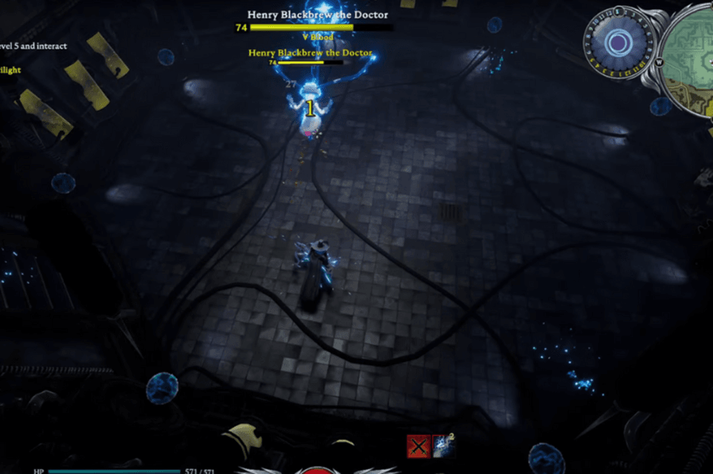 During the fight with Henry Blackbrew the Doctor, all of his attacks apply Electric Amplify, which increases the damage you take by 5% per stack, so the longer the fight goes on, the more dangerous it gets.